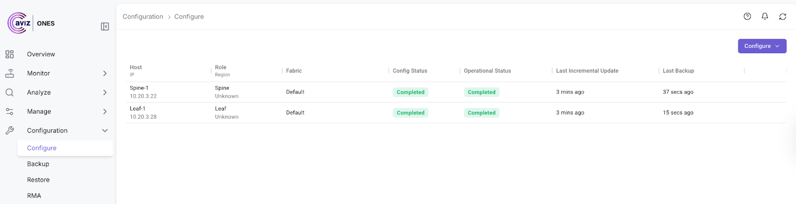 ONES provides real-time updates when the devices are being configured and validates the configurations automatically to ensure the network is ready to use.