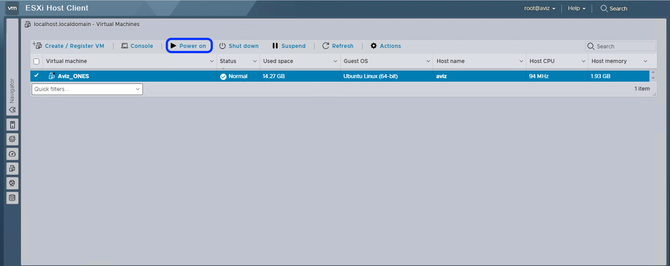 ONES is Ready to use >> Power On the ONES VM