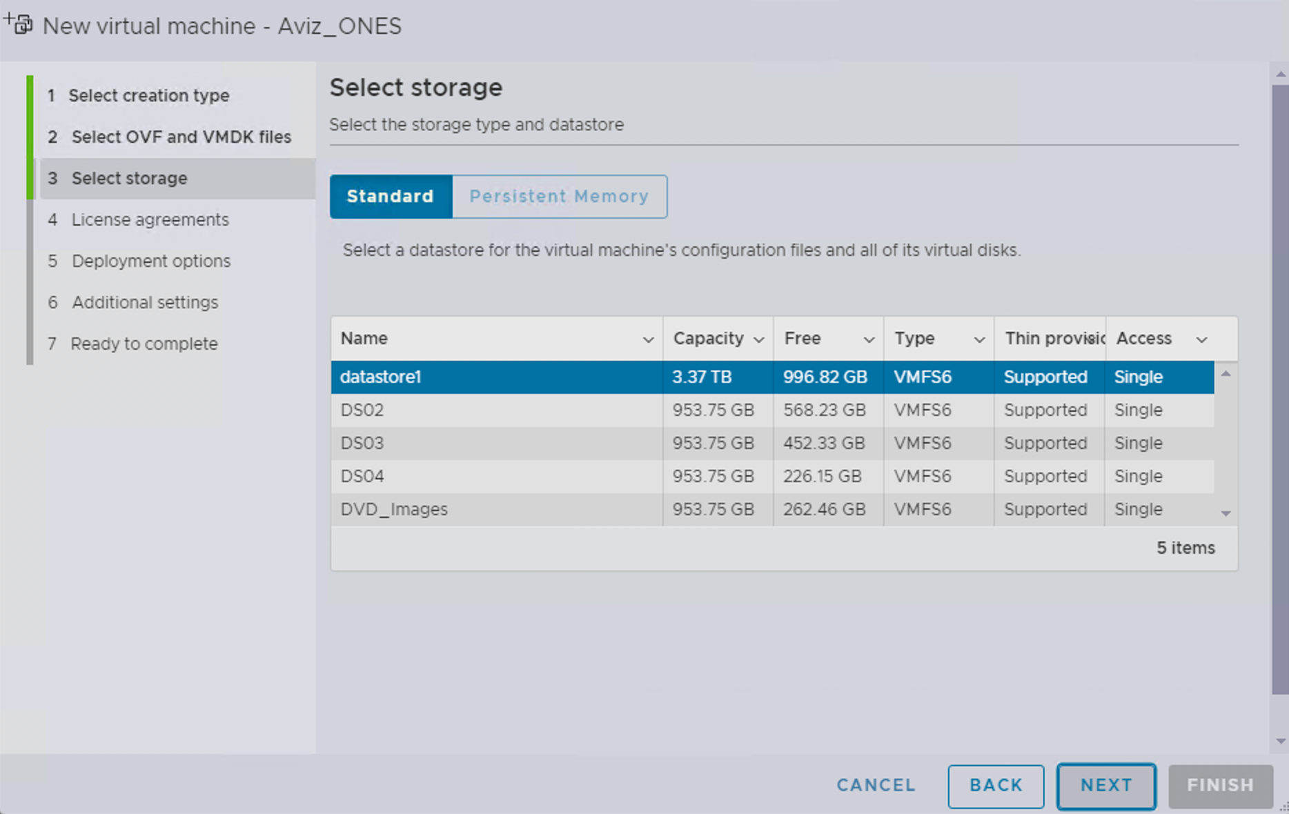 Choose preferred storage to run ONES-4.1 VM >> NEXT