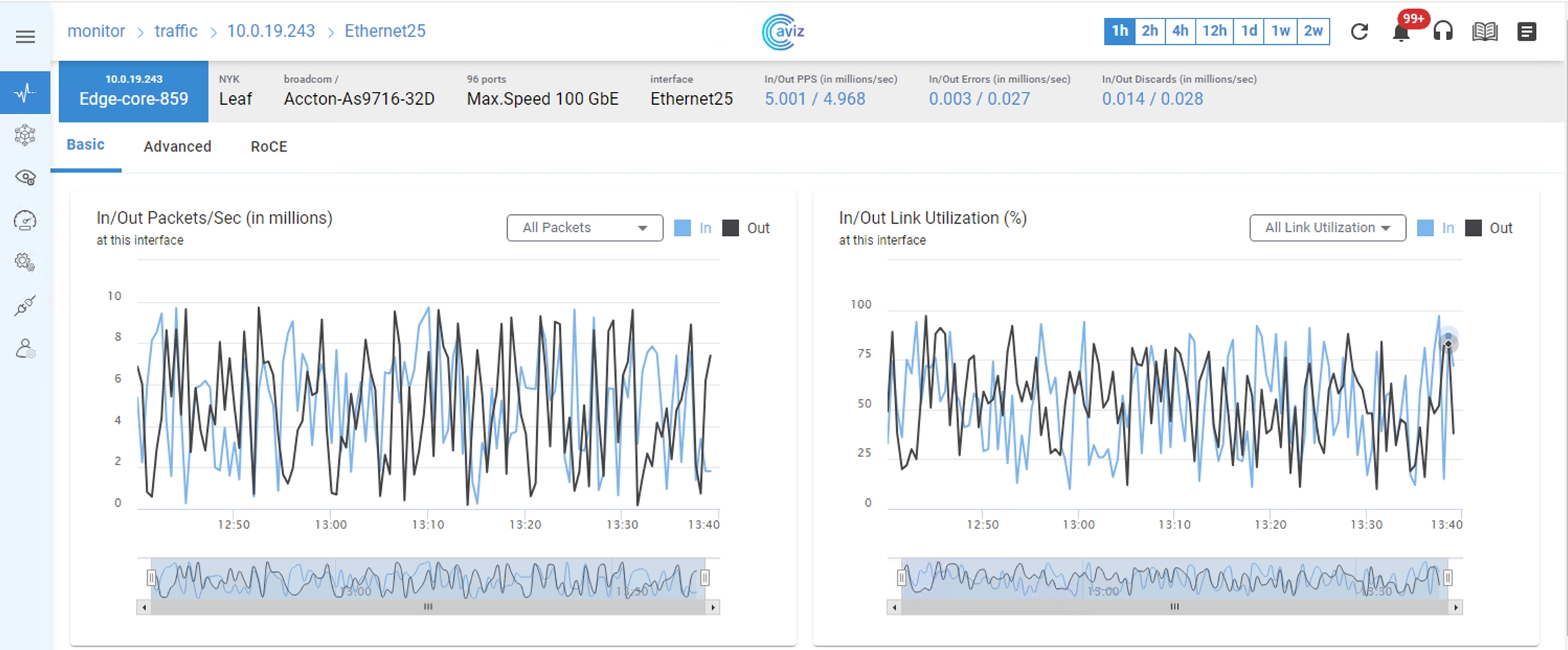 When we click on any particular interface it gives the timescale of the inputs and output packets with Errors and Discards & all metrics in detail