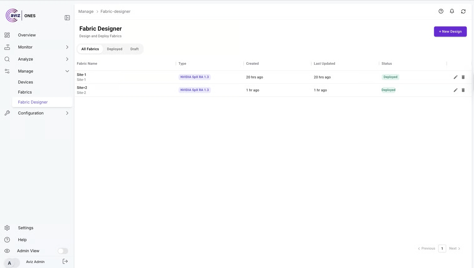 Fabric Designer is an intelligent orchestration solution built on ONES that helps you design, deploy, and operate multi-tenant Spectrum-X fabrics with confidence. It eliminates complexity and gives teams a faster, more visual way to manage data center networking.