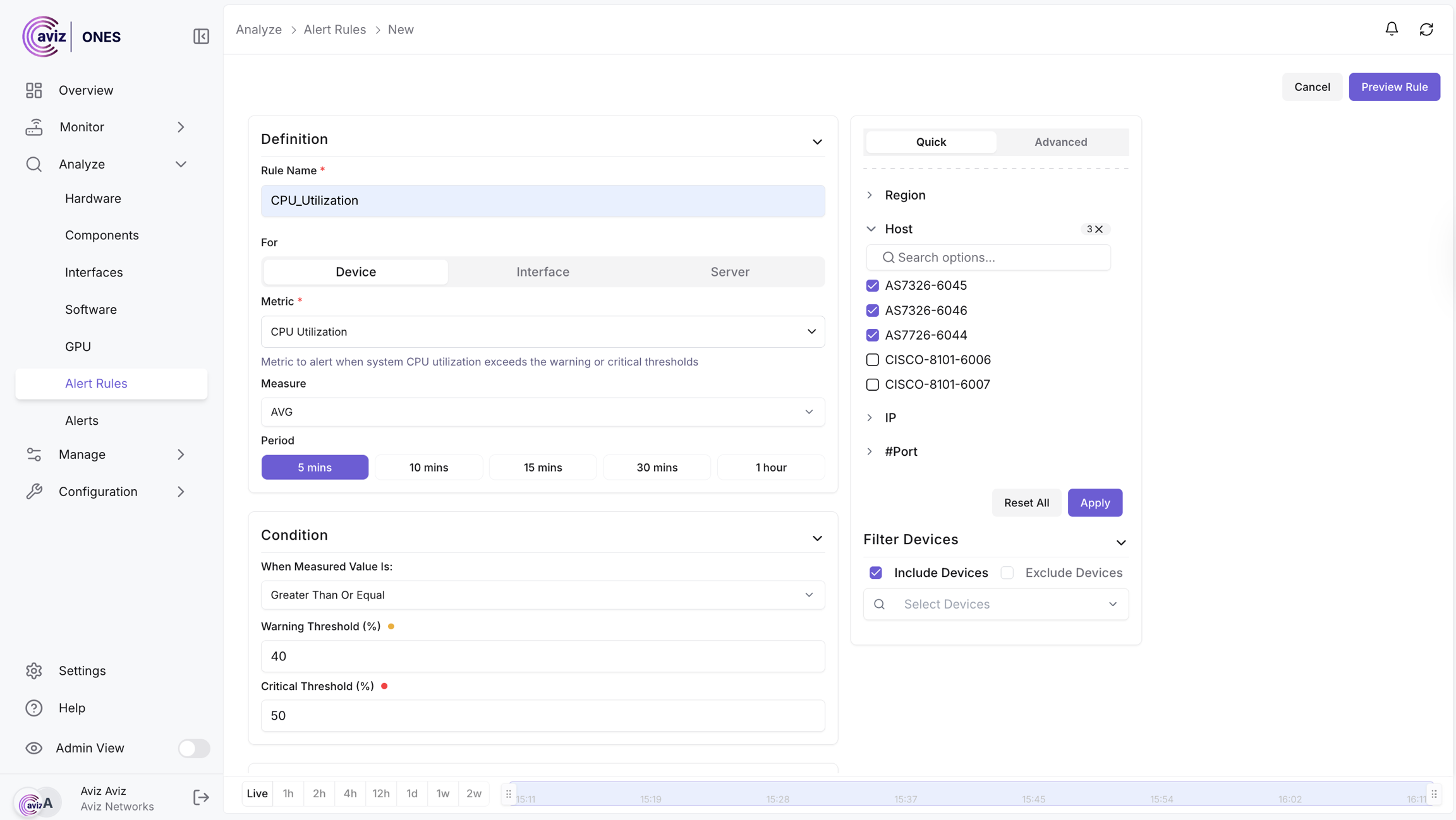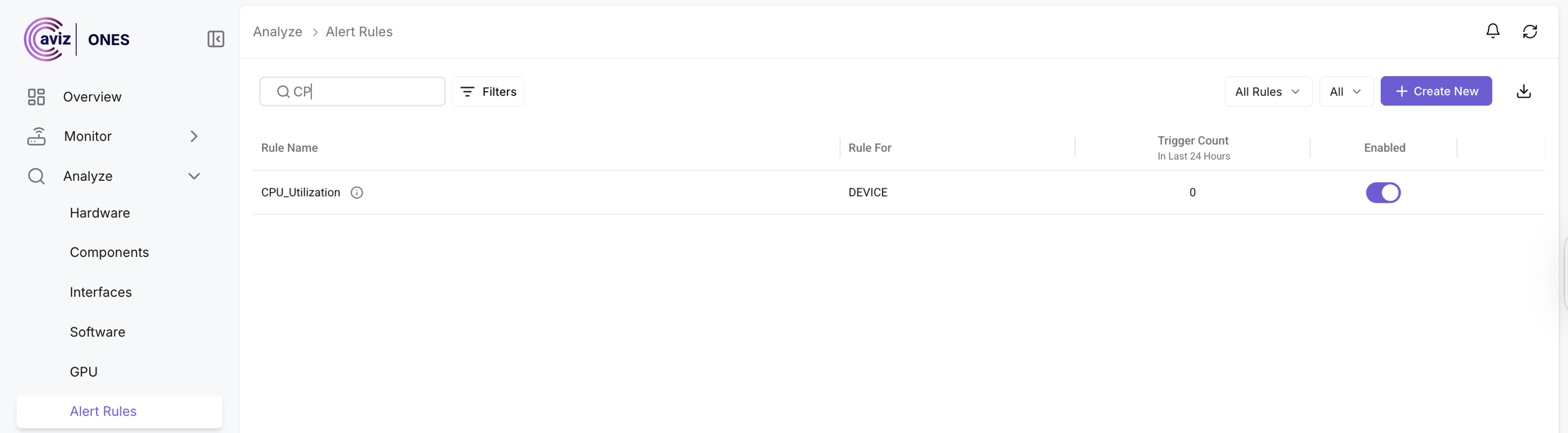 Navigation >> Analyze >> Alert Rules >> Create New