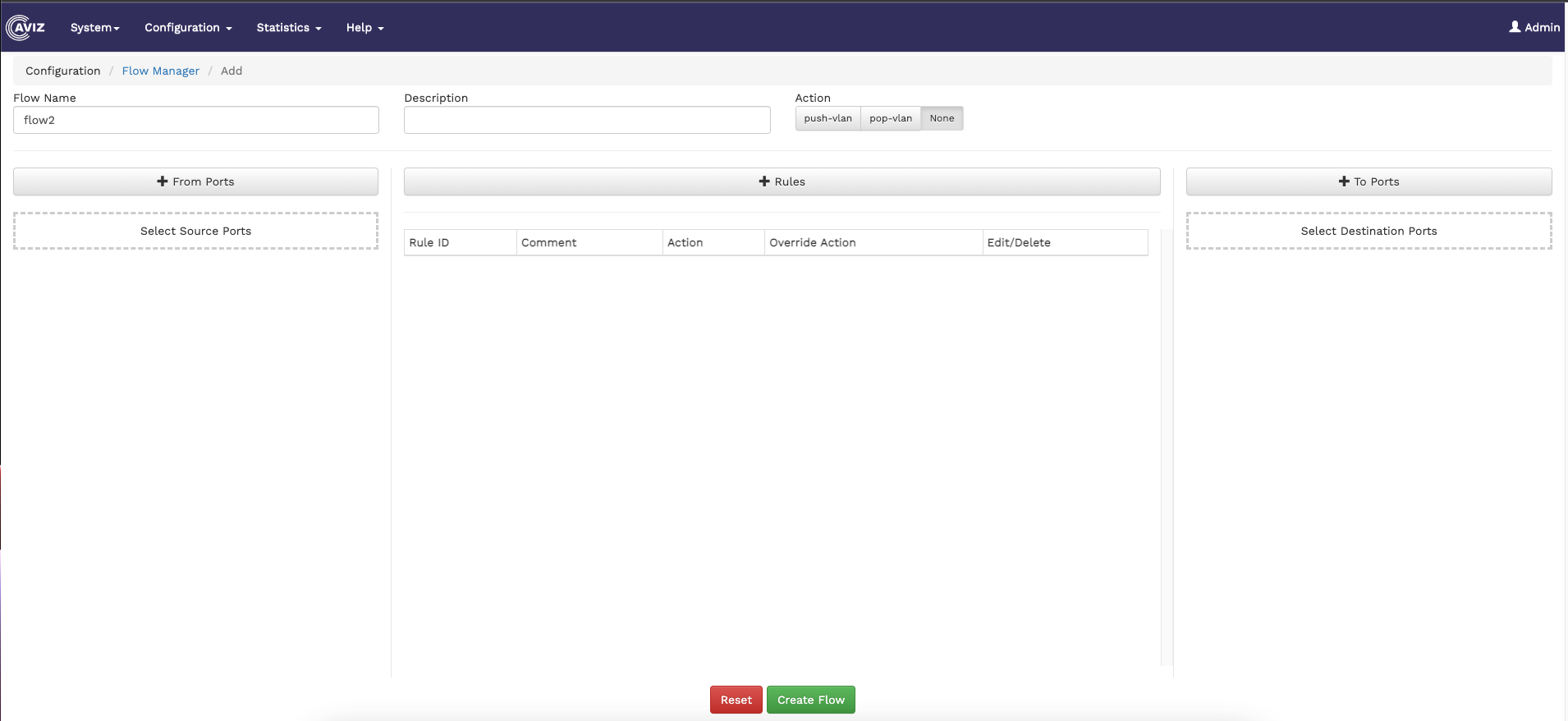 To create and configure flows from the FlowVision GUI, click Configuration > Flow Manager.