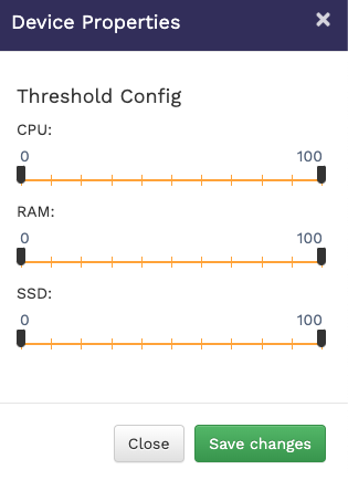 Drag the sliders to the desired point to configure the threshold values for CPU, RAM, and SSD.