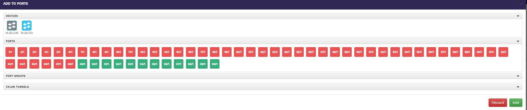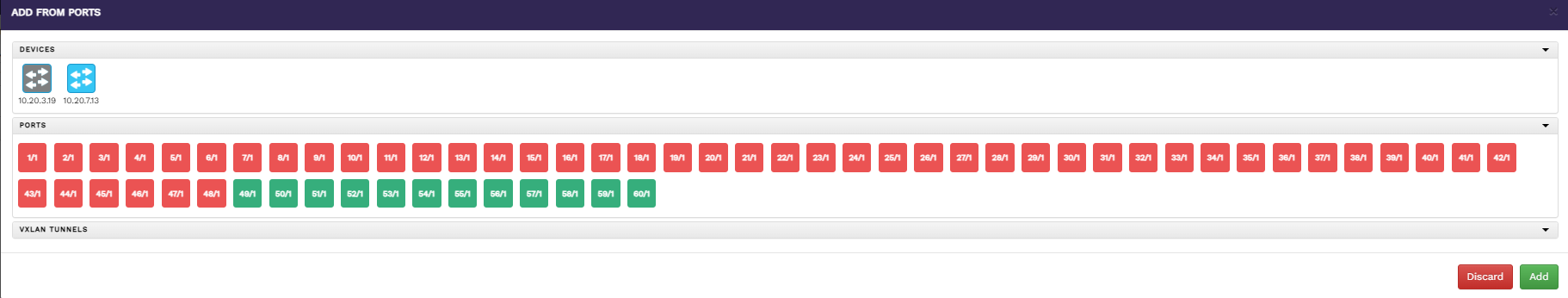 From port addition page Select a device to list all the ports available for that device.