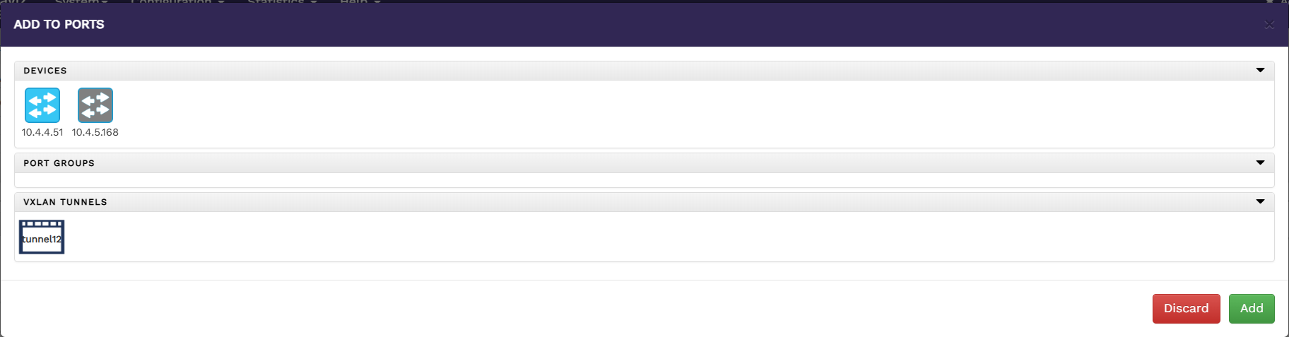 Choose the VXLAN tunnel you want to add as a destination port.