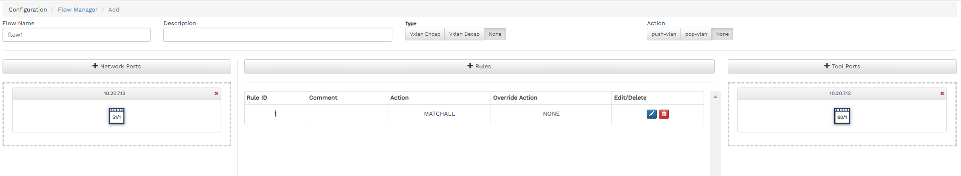 The added tunnel will be displayed below the To Ports button on the Add Flow page.