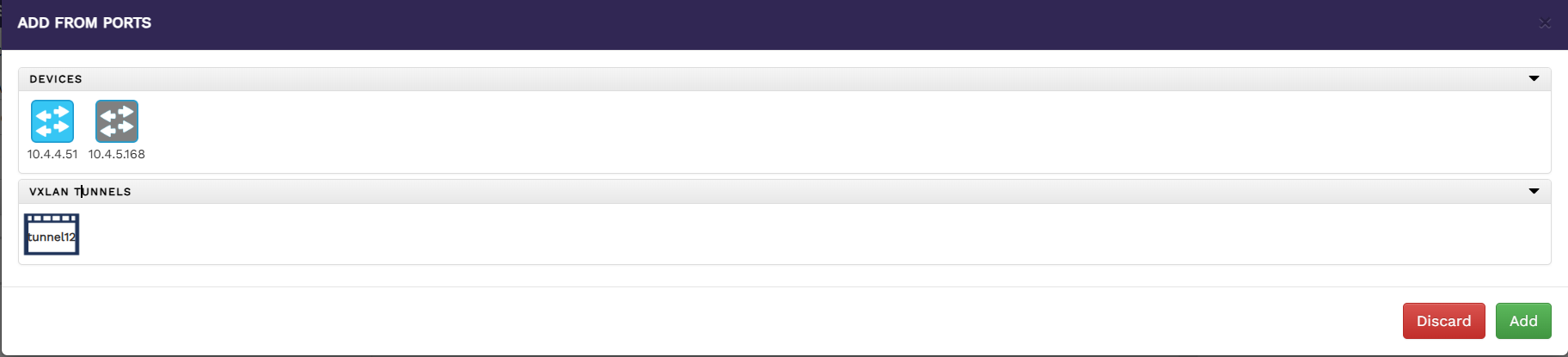 Select a device to list the available Vxlan tunnel for that device.